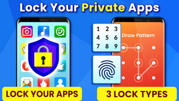 🔷 App Lock with fingerprint helps you lock your apps like WhatsApp, Snapchat, Instagram, Facebook, Telegram, YouTube or any of your favorite social media apps or games.