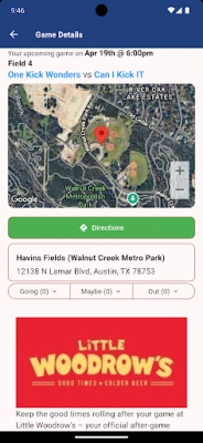The Austin Sports & Social Club Android app allows players to get notifications (rainouts, results, league news, and more), chat with their teammates, receive discounts around town, and view team schedules & standings on their mobile device.