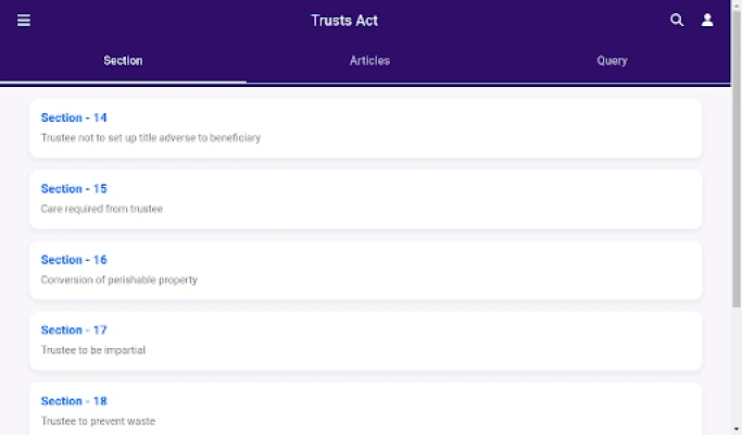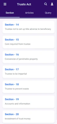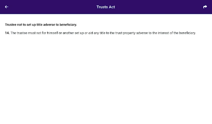 This Indian Trusts Act, 1882 App by offlineappsindia - India provides section wise list along with Search functionality and provides the Trusts Act offline. You can now read articles, news and discuss your queries with top CA/CS/CMA and other professionals from bodies like ICAI, ICSI and ICWA on the updated Indian Trusts Act, 1882 India App. The indian_trusts app launched by us tries to incorporate the latest bare act as made available by the government.